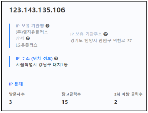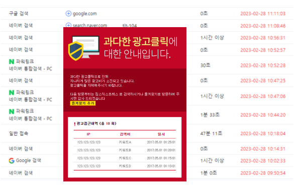 👉 이 서비스는 단순한 모니터링이 아닌, 실시간 대응형 광고 보호 시스템입니다. 부정클릭 차단시스템으로 내 광고 예산을 지키고, 진짜 고객에게 집중하시기 바랍니다.